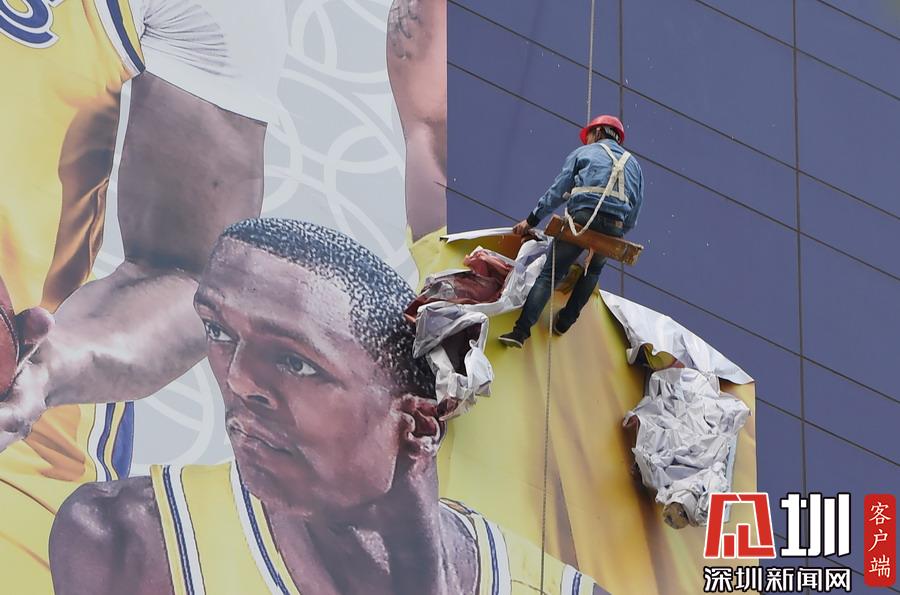 “2019NBA球迷之夜”取消 上海正大廣場(chǎng)外圍巨幅NBA中國(guó)賽海報(bào)被拆除
