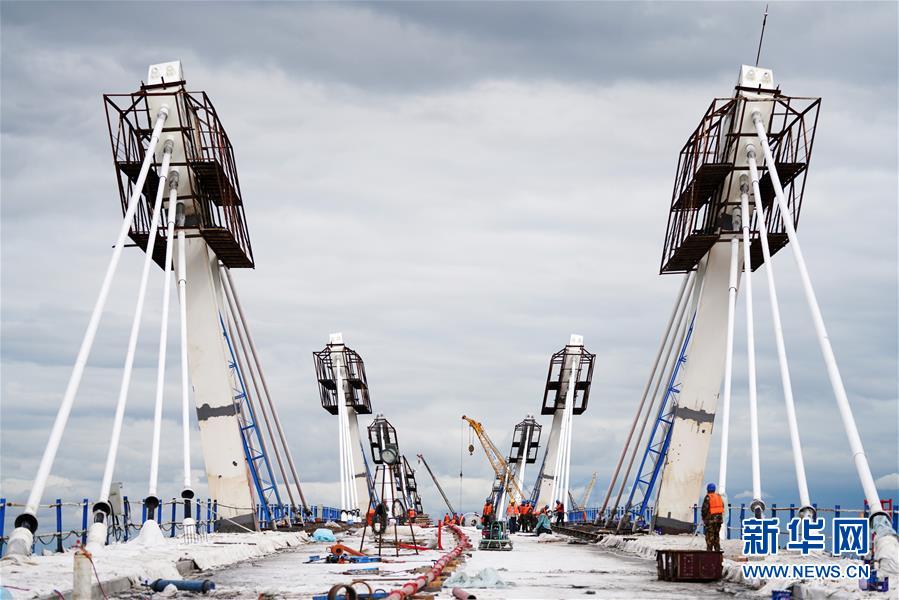 工人在大橋上進行橋面鋪裝施工作業(yè)(8月19日攝)。新華社記者 王建威 攝