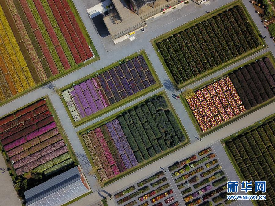 這是北京世園會園藝小鎮(zhèn)(10月7日無人機拍攝)。新華社記者張晨霖攝
