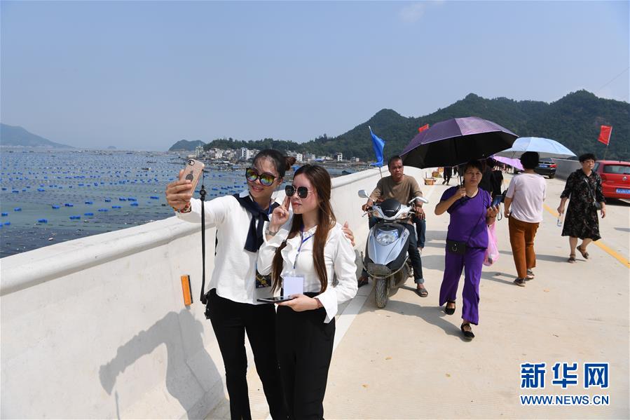 10月12日,福建省霞浦縣東安島海防大橋正式通車,當地群眾前來體驗新橋帶來的便利。新華社記者姜克紅攝