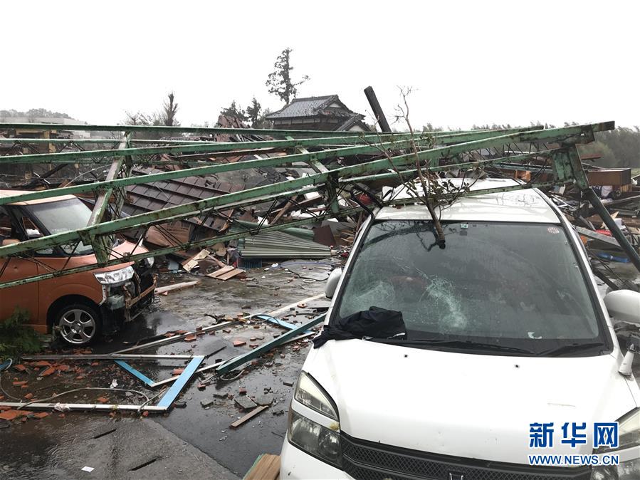 10月12日,在日本千葉縣市原市,建筑物和車輛遭龍卷風(fēng)襲擊后被損毀。新華社記者 鄧敏 攝