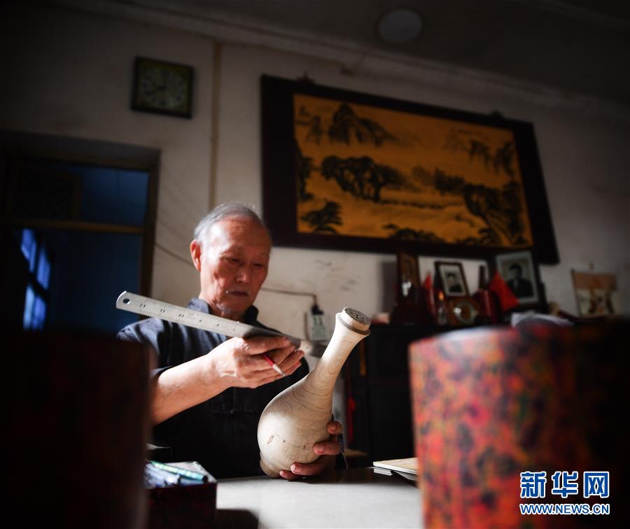 10月12日,丁國坤在家中設(shè)計(jì)一件脫胎漆器的模型。新華社記者胡晨歡攝