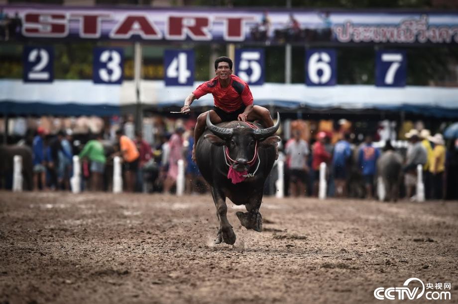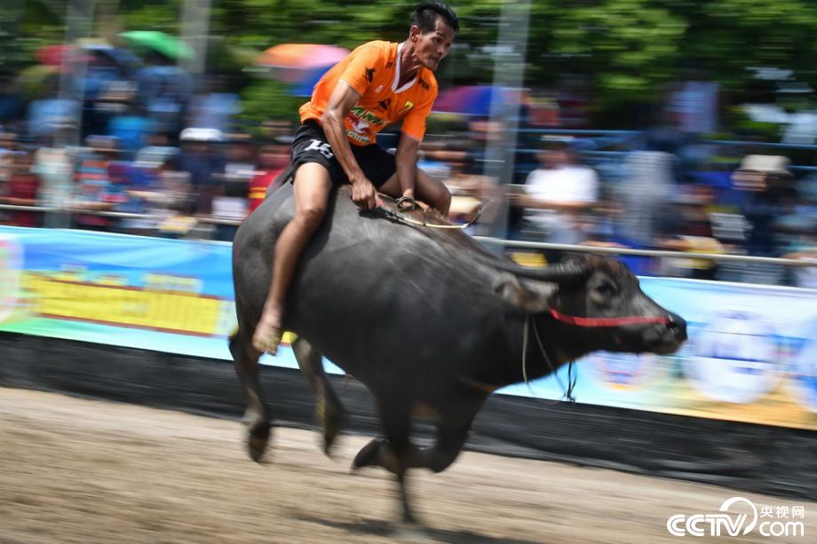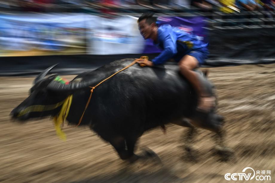央視網(wǎng)消息:當(dāng)?shù)貢r(shí)間2019年10月12日,泰國(guó)春武里舉行一年一度的水牛賽跑,選手騎??癖肌R曈X中國(guó)