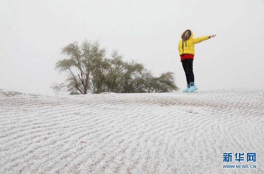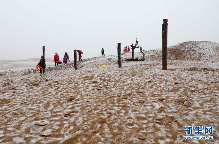 10月15日,游客在寧夏中衛(wèi)市沙坡頭景區(qū)欣賞沙漠雪景。深秋時(shí)節(jié),位于騰格里沙漠邊緣的寧夏中衛(wèi)市沙坡頭景區(qū)迎來(lái)一場(chǎng)降雪。漫漫黃沙被覆蓋在皚皚白雪之下,呈現(xiàn)出一種別樣的美。新華網(wǎng)杜文杰攝