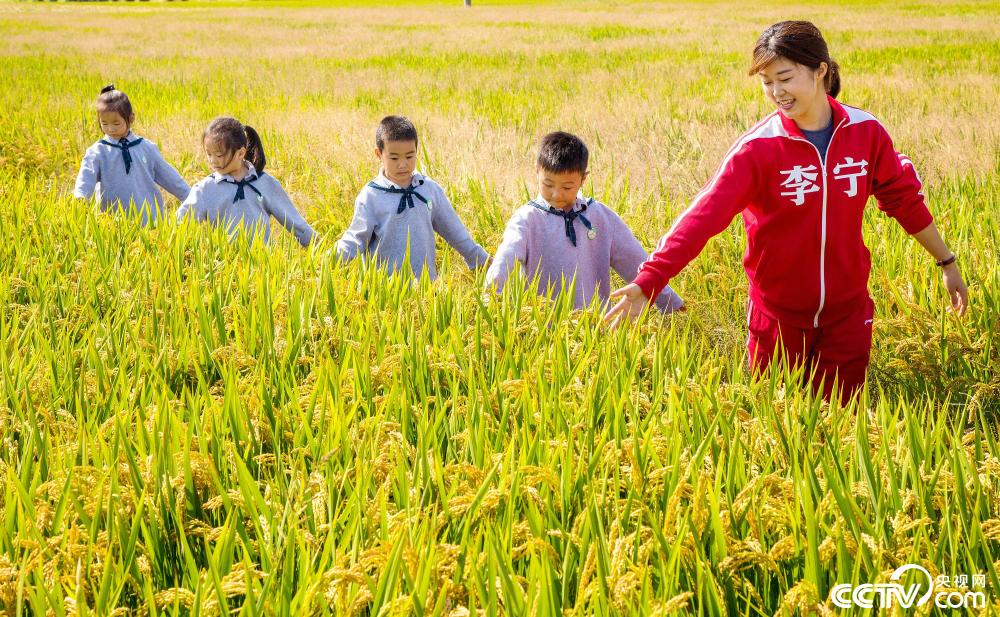 2019年10月15日,浙江省湖州市長(zhǎng)興縣開發(fā)區(qū)實(shí)驗(yàn)幼兒園的老師帶領(lǐng)孩子們走進(jìn)稻田,感受豐收的喜悅。圖片來源:視覺中國(guó)