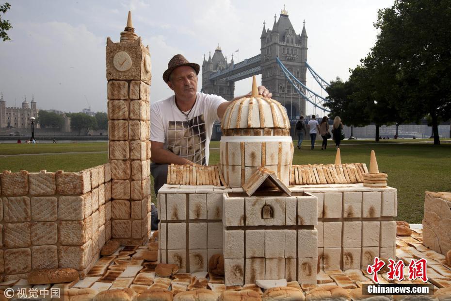 藝術(shù)家用面包等烘焙食品打造微縮倫敦地標(biāo)建筑。圖片來源:視覺中國(guó)