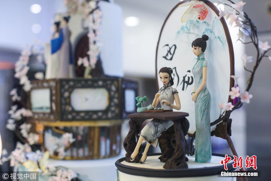杭州翻糖蛋糕師將白娘子、雷峰塔等杭州文化符號(hào)雕刻在翻糖蛋糕上,從最基礎(chǔ)的設(shè)計(jì)和構(gòu)思,然后動(dòng)手制作、調(diào)色,最后組裝,濃濃的“中國(guó)風(fēng)”融合舌尖上的甜美藝術(shù),碰撞出了意想不到的火花。圖片來源:視覺中國(guó)