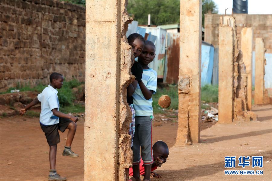10月16日,在肯尼亞內(nèi)羅畢基貝拉貧民窟,孩子們在放學后玩耍。新華社記者王騰攝