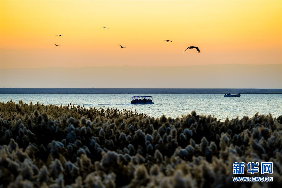 這是10月17日拍攝的日出時(shí)分的居延海風(fēng)光。 新華社記者 彭源 攝
