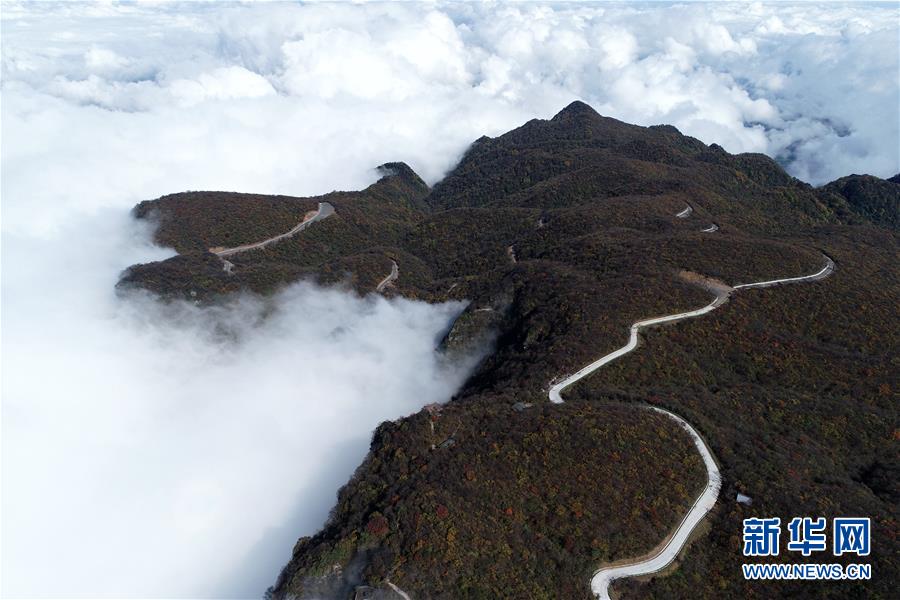 10月16日拍攝的漢中市南鄭區(qū)龍頭山風(fēng)景區(qū)(無(wú)人機(jī)拍攝)。  新華社記者 張博文 攝
