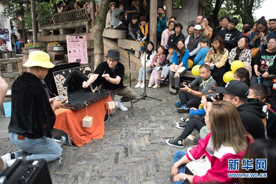 10月26日,一個劇團在烏鎮(zhèn)街頭表演。 新華社記者翁忻旸攝