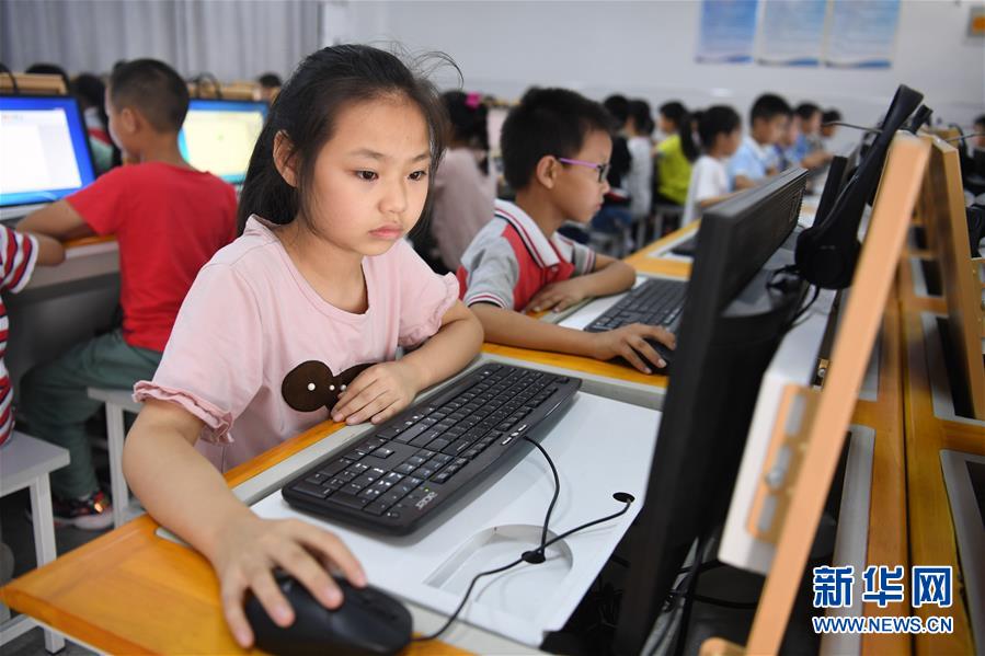 9月3日,金寨縣希望小學(xué)南校區(qū)學(xué)生在上計(jì)算機(jī)課。新華社記者劉軍喜攝