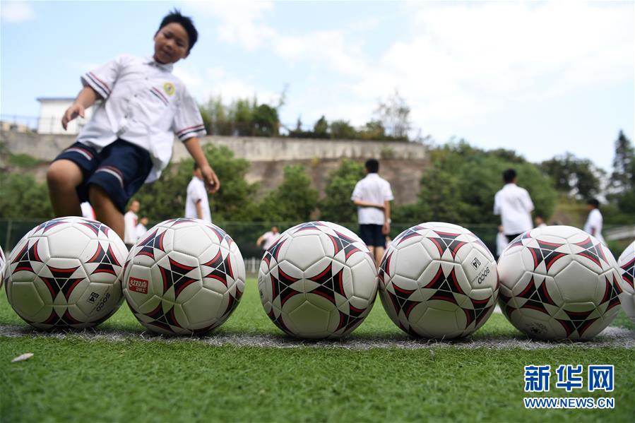 9月3日,金寨縣希望小學(xué)學(xué)生在足球課上訓(xùn)練。新華社記者張端攝