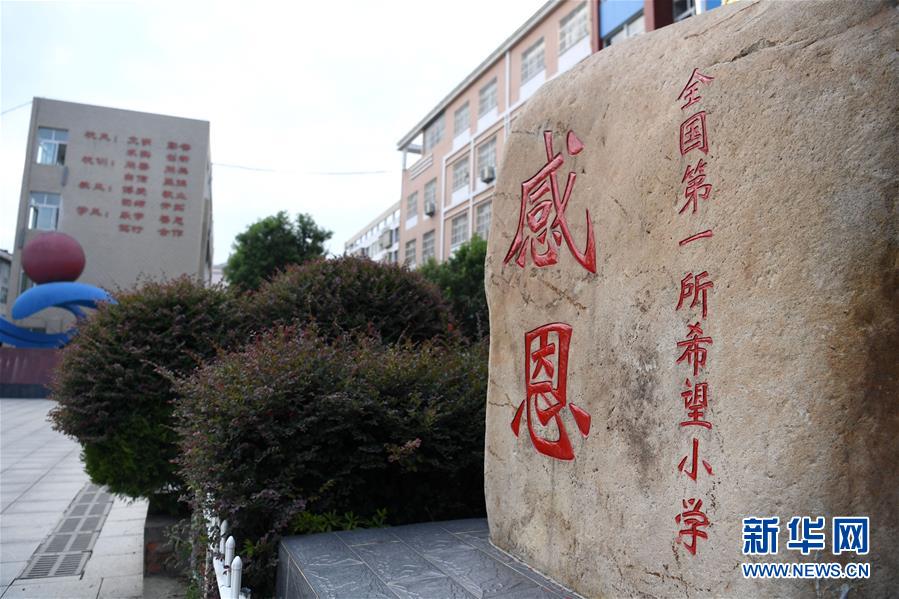 這是金寨縣希望小學校園里的“感恩”石(9月3日攝)。新華社記者劉軍喜攝