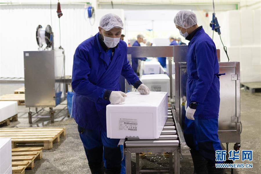 9月13日,在俄羅斯摩爾曼斯克,俄羅斯水產(chǎn)養(yǎng)殖公司工作人員搬運已裝箱的鮭魚。 俄羅斯水產(chǎn)養(yǎng)殖公司是俄羅斯大西洋鮭和虹鱒的主要生產(chǎn)商之一。目前,該公司產(chǎn)品在俄市場上占比近20%,在摩爾曼斯克和卡累利阿共和國均有養(yǎng)殖場。俄羅斯水產(chǎn)養(yǎng)殖公司總經(jīng)理伊利亞·索斯諾夫認(rèn)為,中國鮭魚消費市場潛力巨大。“中國市場對于我們來說非常重要,我們期待早日進(jìn)入中國市場……希望我們的鮭魚能贏得中國消費者的喜愛?!?新華社記者白雪騏攝