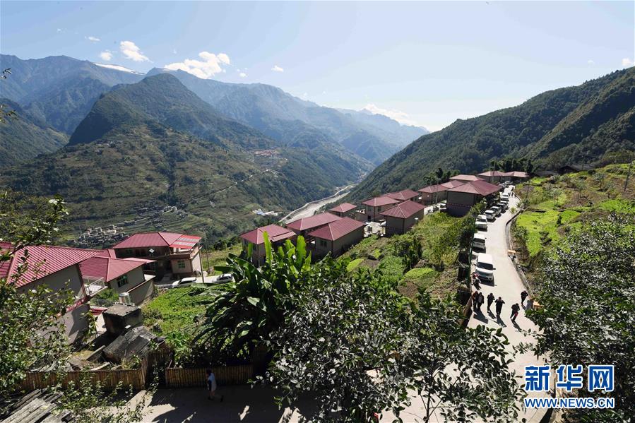 11月2日,云南福貢縣鹿馬登鄉(xiāng)干布村的傈僳族群眾行走在水泥硬化路上。新華社記者楊宗友攝