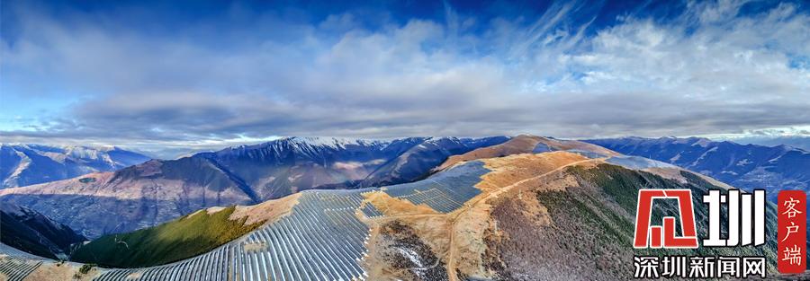 位于海拔3900米的四川省阿壩州小金縣大壩口村,場面壯觀的光伏發(fā)電廠占據(jù)了整個山脈。