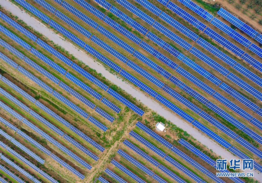 這是7月5日拍攝的山西省運(yùn)城市芮城縣光伏領(lǐng)跑技術(shù)基地(無人機(jī)拍攝)。