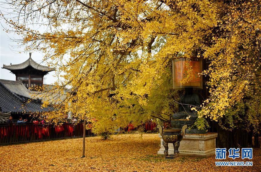 11月11日拍攝的羅漢洞村古觀音禪寺內(nèi)的千年銀杏樹(shù)。新華社記者劉瀟攝