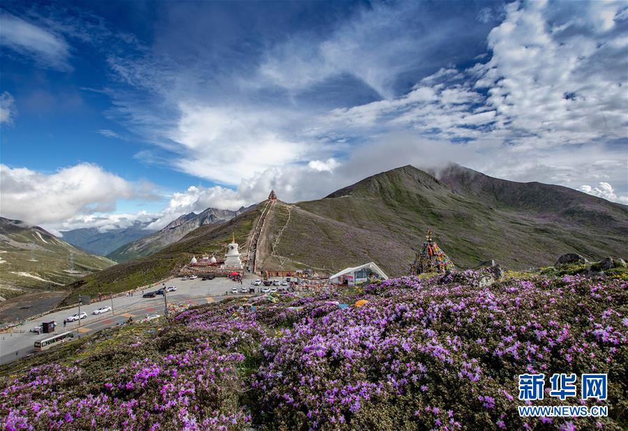 杜鵑花在川藏公路四川折多山埡口盛開(kāi)(6月28日攝)。新華社記者江宏景攝
