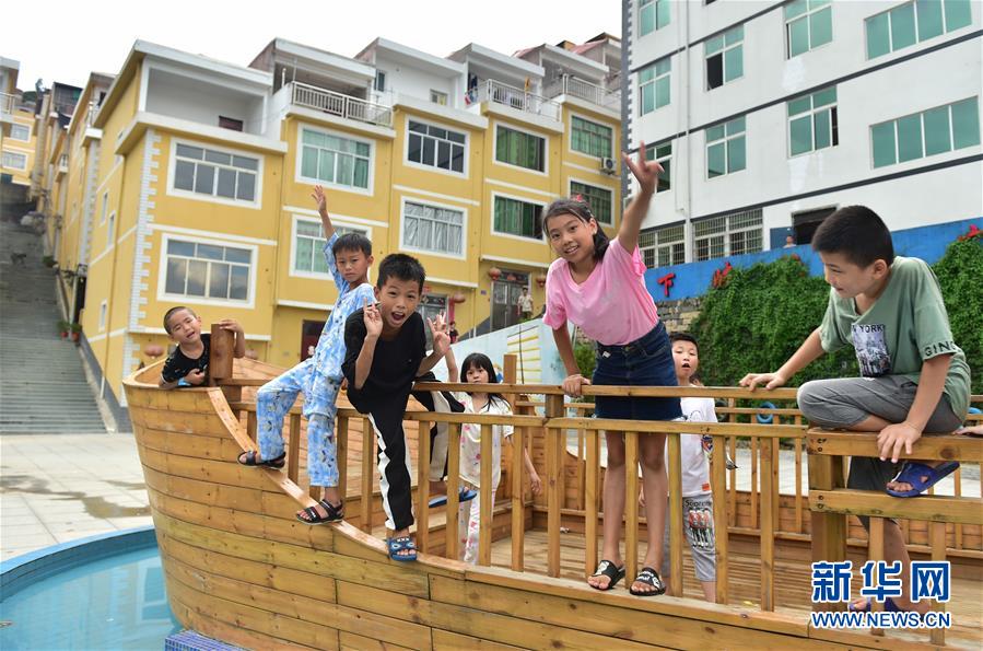 8月22日,福安市下岐村小朋友在下岐漁民廣場前玩耍。新華社記者林善傳攝