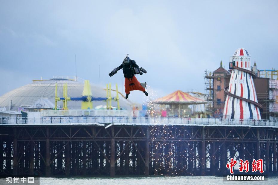 理查德·布朗寧(Richard Browning)身著噴氣發(fā)動(dòng)機(jī)套裝,以最快的速度打破了2017年創(chuàng)下的32.02英里/小時(shí)的紀(jì)錄。圖片來源:視覺中國