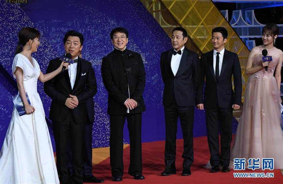 11月23日,黃渤、成龍、陳道明、吳京(左二起)在紅毯儀式上。當(dāng)日,第28屆中國(guó)金雞百花電影節(jié)紅毯儀式在福建廈門舉行。新華社記者張國(guó)俊攝