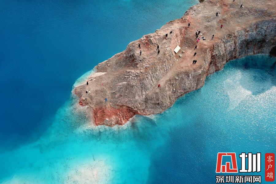 藍(lán)色的湖體和礦坑的巖石相襯下酷似“馬爾代夫”旅游景點(diǎn),成為“網(wǎng)紅”,一時(shí)間吸引了眾多游客前來觀光打卡。
