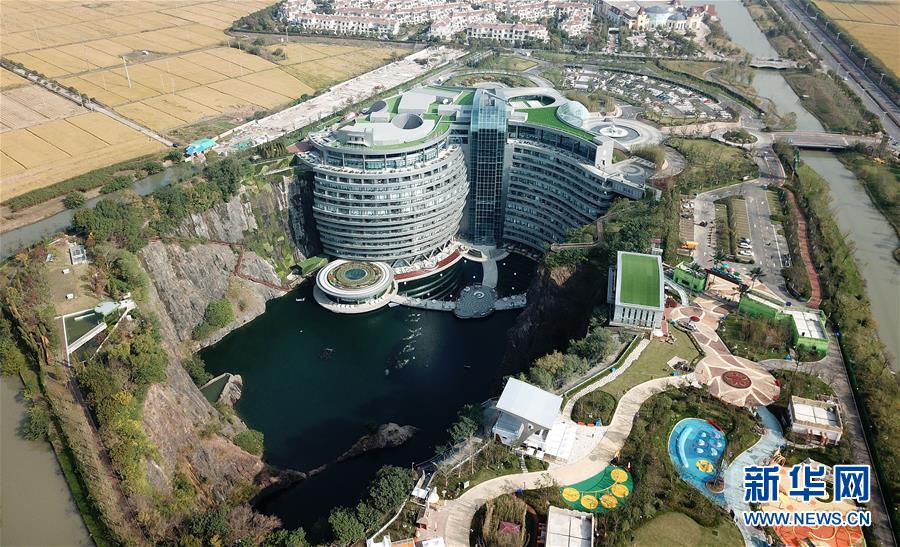 這是位于上海松江佘山腳下的世茂洲際酒店(11月13日無人機(jī)拍攝)。位于上海松江的世茂洲際酒店11月15日正式開門營業(yè)。這家在一個(gè)廢棄采石礦坑內(nèi)建成的酒店成為上海又一新景。新華社記者方喆攝