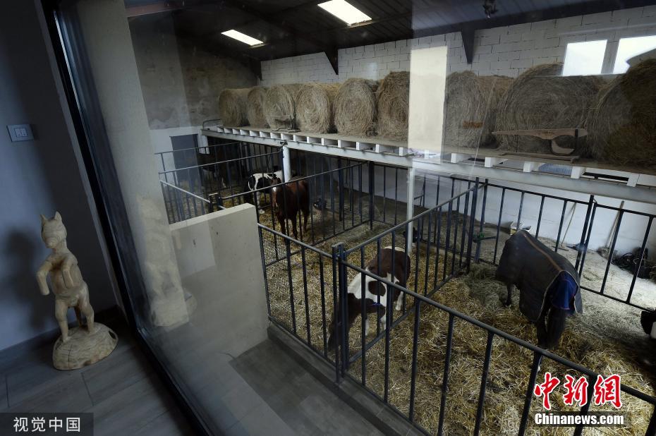 當地時間2019年11月25日,法國桑圖瓦地區(qū)弗賴斯內,一家特別的“酒店”開張,入住者可以透過玻璃清楚的看到馬廄里的馬,還可以跟馬親密接觸。圖片來源:視覺中國