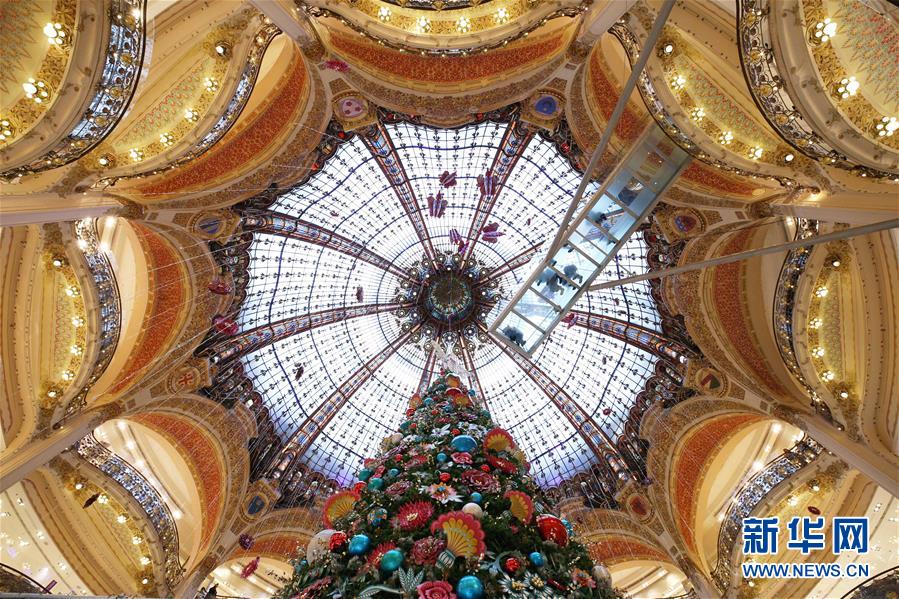 這是11月14日在法國(guó)巴黎老佛爺百貨公司拍攝的巨型圣誕樹(shù)。 近日,法國(guó)巴黎老佛爺百貨公司立起巨型圣誕樹(shù),璀璨的燈光和精美的造型設(shè)計(jì)吸引了眾多市民和游客前來(lái)參觀。人們還可以在商場(chǎng)三樓處踏上高16米、長(zhǎng)8米的玻璃走廊,與圣誕樹(shù)“親密接觸”。 新華社記者高靜攝