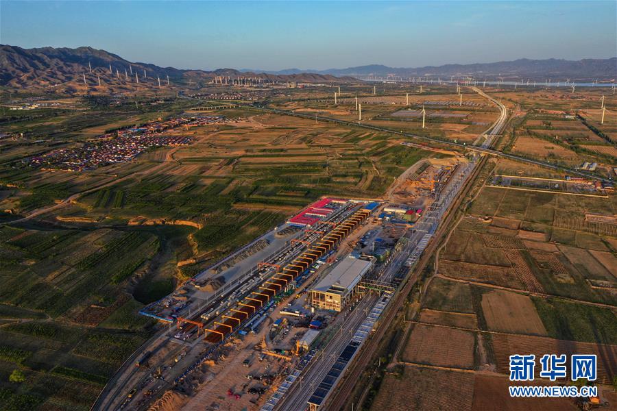 5月28日無人機拍攝的建設(shè)中的京張高鐵懷來站。新華社記者邢廣利攝