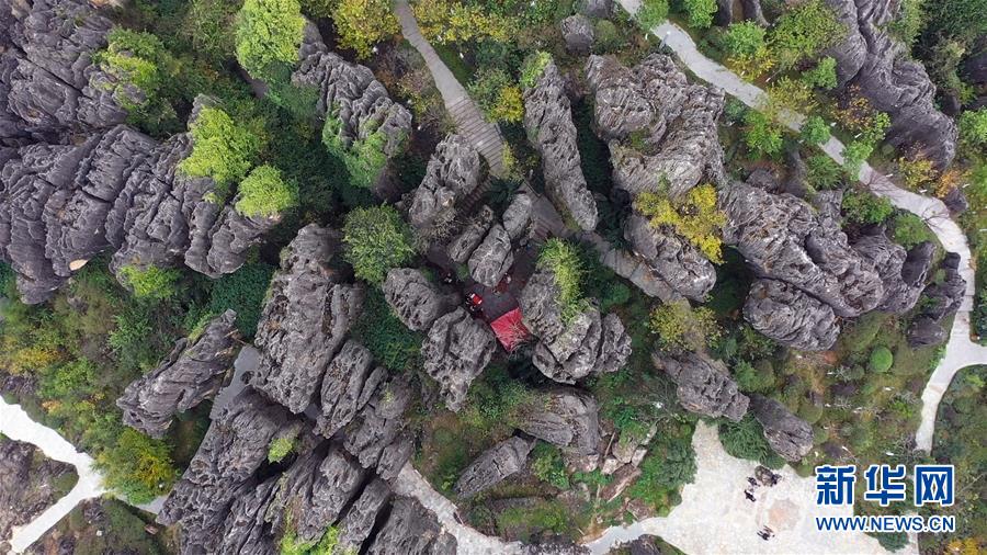 這是云南石林彝族自治縣黑石箐石林景觀(11月28日無人機拍攝)。初冬時節(jié),云南省石林彝族自治縣黑石箐景區(qū)內(nèi)一千多種中藥材生長在婀娜多姿的原始石林間,形成獨特的景觀,吸引眾多游人前來觀賞。新華社記者胡超攝