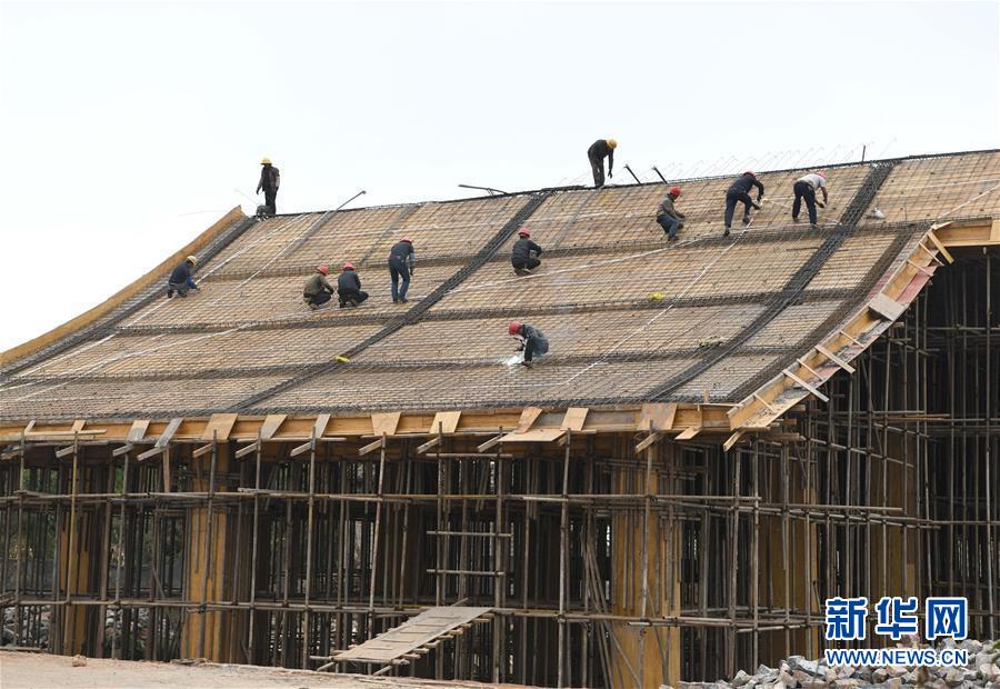 11月28日,工人們?cè)诖笈春诖宓膭≡航ㄔO(shè)現(xiàn)場工作。新華社記者周華攝