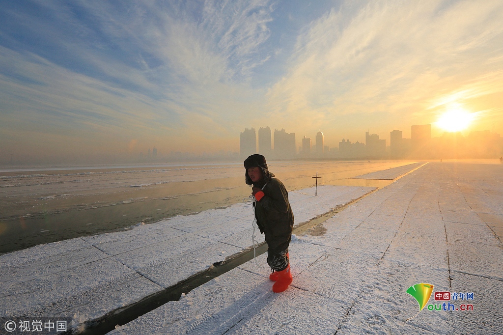 寒冬采冰人:起早貪黑 “淘金”冰雪