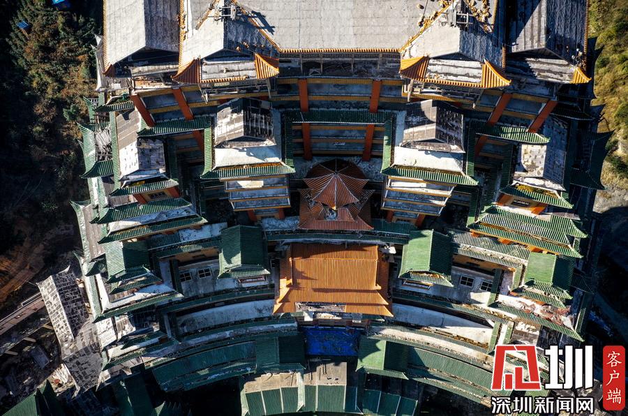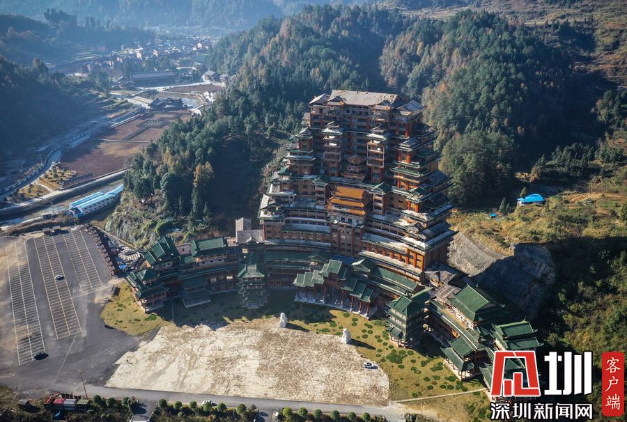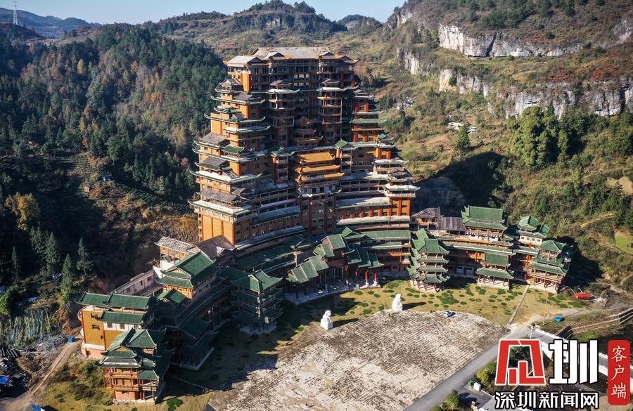 2019年12月8日,貴州省黔南布衣族自治州。位于獨(dú)山縣影山鎮(zhèn)凈心谷的水司府堂占地面積5900平方米,總建筑面積60000平方米,共24層,高99米,進(jìn)深240米,是世界上最高最大最壯觀(guān)的水族建筑,被稱(chēng)為“天下第一水司樓”。