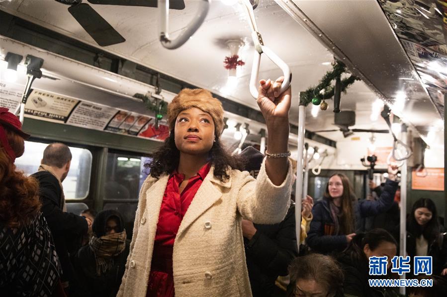 12月8日,在美國紐約,人們搭乘“懷舊專列”。每年感恩節(jié)到新年之間的星期日,紐約地鐵都會用1932年至1977年間使用的老式列車在運營的線路上開行特別的“懷舊專列”,人們穿戴舊時服飾專程前來搭乘,體驗時光回溯的奇妙旅程。新華社記者王迎攝