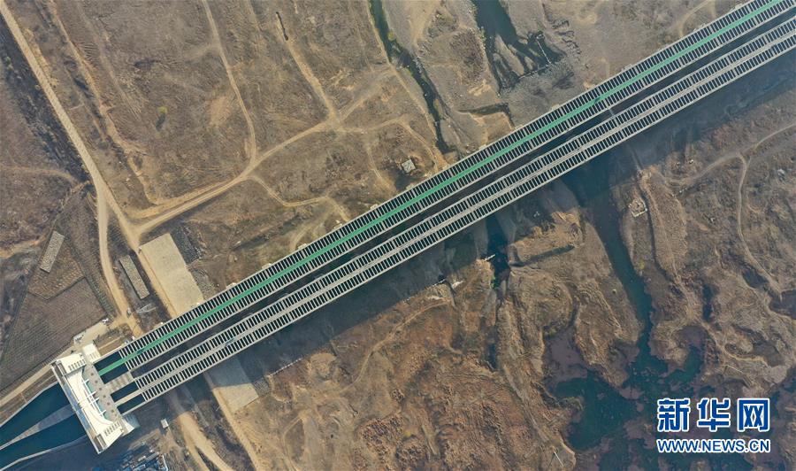 這是12月9日無人機(jī)拍攝的南水北調(diào)中線總干渠沙河渡槽工程。新華社記者馮大鵬攝
