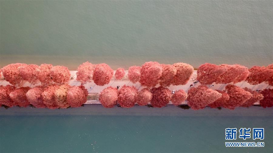 12月10日,游客在湖南烈士公園年嘉湖的游道上行走(無人機拍攝)。