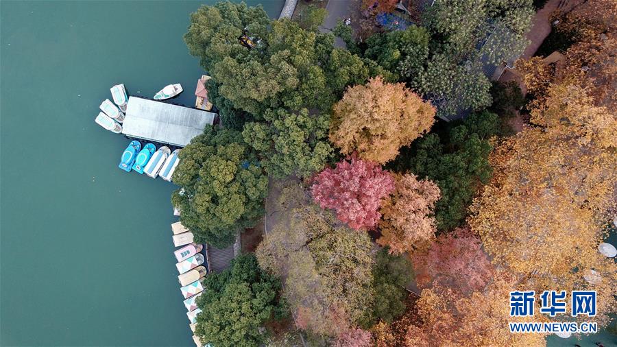 12月10日,游船停靠在湖南烈士公園年嘉湖湖畔(無人機(jī)拍攝)。新華社記者陳澤國攝