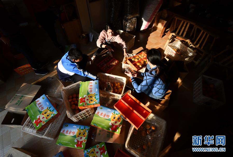 12月13日,廣西柳州市鹿寨縣一家土特產(chǎn)銷售公司員工在包裝蜜橙,準(zhǔn)備通過電商銷售。新華社記者 黃孝邦 攝