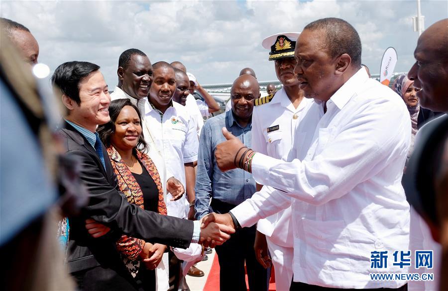 12月13日,在肯尼亞加里薩郡,肯尼亞總統(tǒng)烏胡魯·肯雅塔(右)出席光伏發(fā)電站投運(yùn)啟動儀式。 中企承建的東非最大光伏電站肯尼亞加里薩50兆瓦光伏發(fā)電站13日正式投入運(yùn)營??夏醽喛偨y(tǒng)肯雅塔在投運(yùn)啟動儀式上致辭說,這一電站將為加里薩帶來穩(wěn)定供電,助力當(dāng)?shù)亟?jīng)濟(jì)發(fā)展。 新華社記者 楊臻 攝