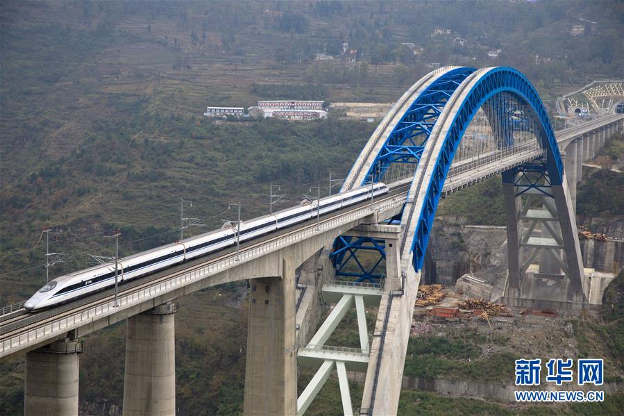 12月2日,一輛試驗(yàn)列車駛過成貴高鐵鴨池河特大橋。當(dāng)日,正在進(jìn)行聯(lián)調(diào)聯(lián)試的成貴高鐵進(jìn)入全線拉通空載模擬運(yùn)行階段,試驗(yàn)列車將在成都到貴陽區(qū)間內(nèi)全線路運(yùn)行。線路全長650公里的成貴高鐵是我國“八縱八橫”高速鐵路網(wǎng)的重要組成部分,設(shè)計時速為250公里。新華社記者劉續(xù)攝