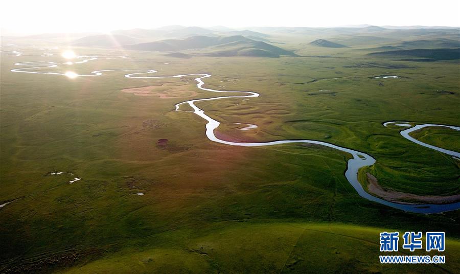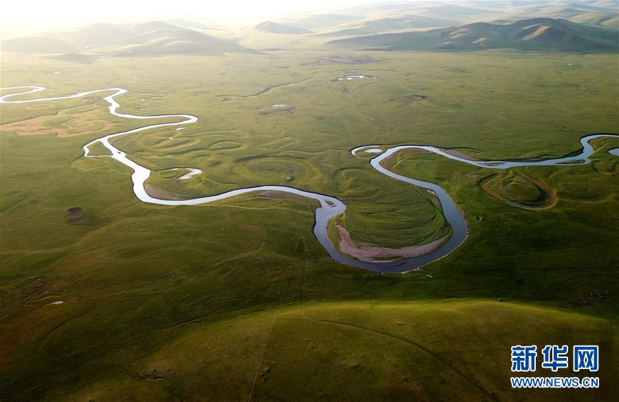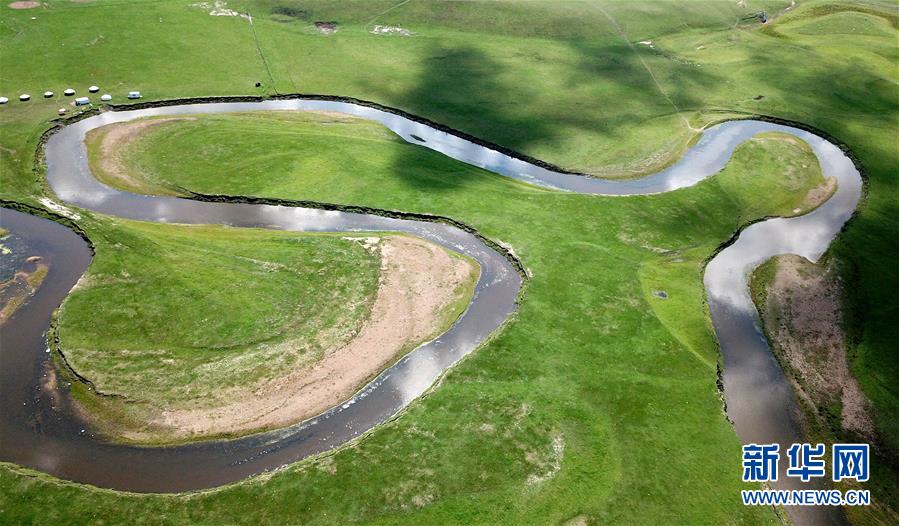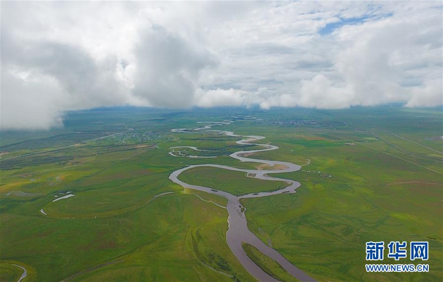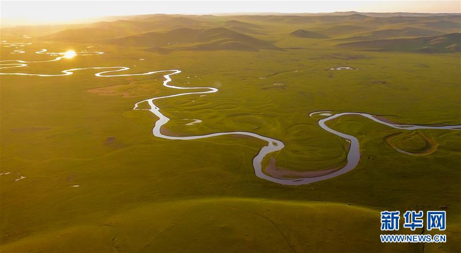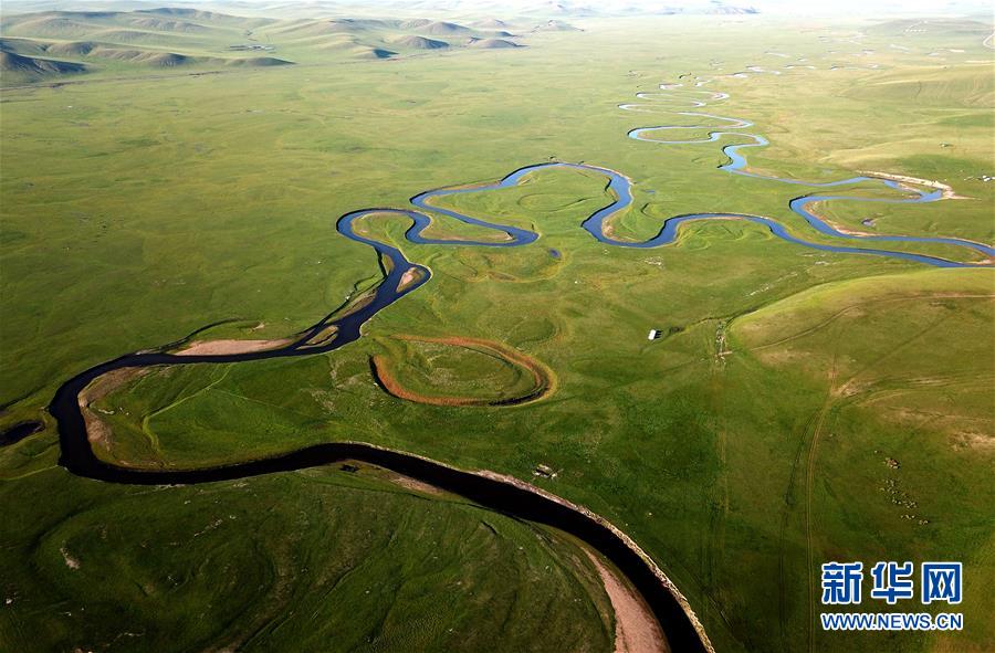 8月26日無(wú)人機(jī)拍攝的伊敏河(全景照片)。伊敏河流經(jīng)呼倫貝爾草原。新華社記者沈伯韓攝