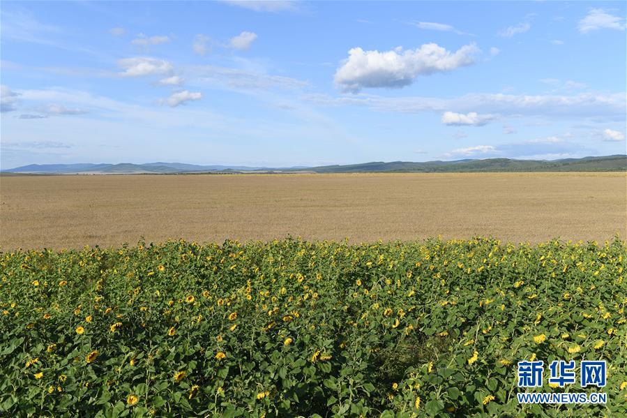8月28日無(wú)人機(jī)拍攝的呼倫貝爾市額爾古納市室韋農(nóng)牧場(chǎng)的田園風(fēng)光。新華社記者劉磊攝