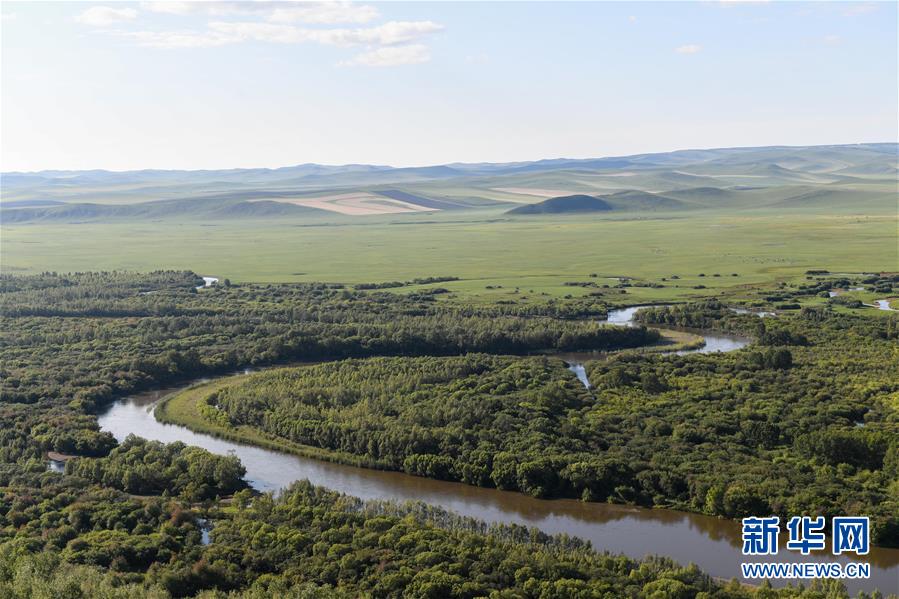 8月29日無(wú)人機(jī)拍攝的內(nèi)蒙古呼倫貝爾市陳巴爾虎旗境內(nèi)的莫日格勒河局部。新華社記者彭源攝