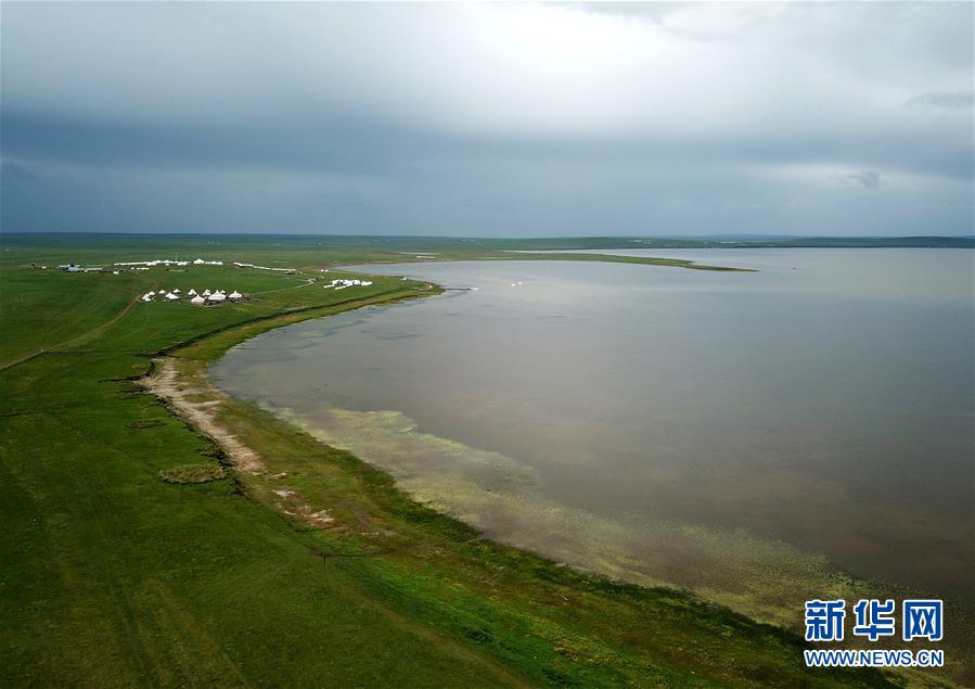 8月27日無(wú)人機(jī)拍攝的呼倫貝爾草原呼和諾爾湖。新華社記者任軍川攝