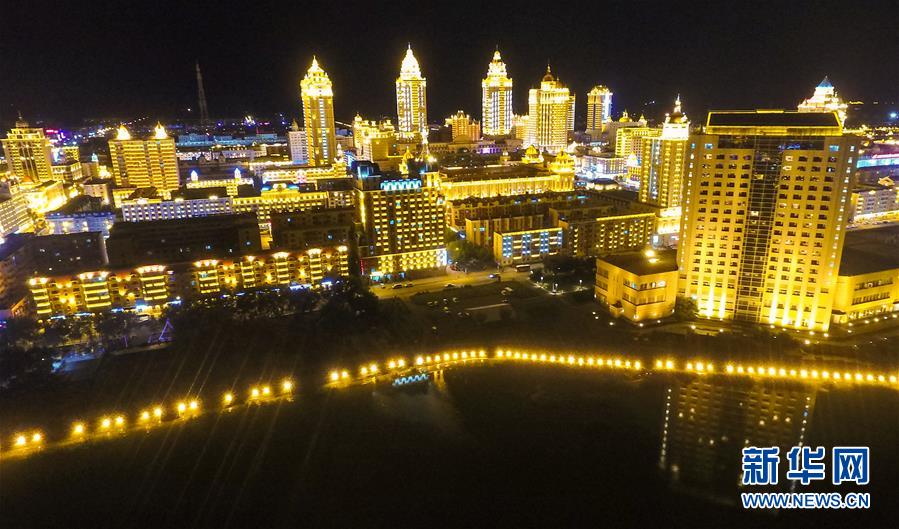 8月28日無(wú)人機(jī)拍攝的滿(mǎn)洲里市中心夜景。滿(mǎn)洲里市位于呼倫貝爾大草原腹地。新華社記者沈伯韓攝