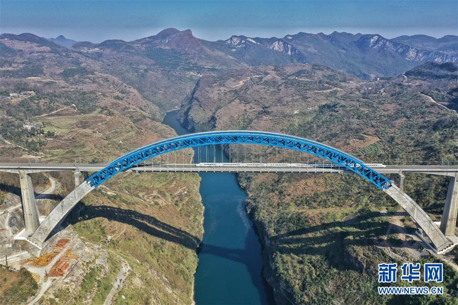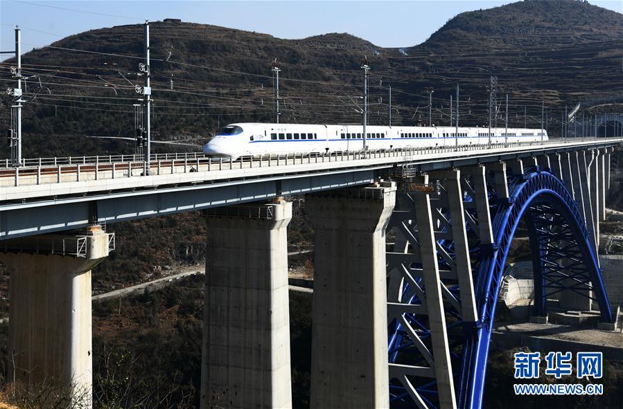 12月16日,一列動(dòng)車組列車從成貴高鐵西溪河大橋上駛過。新華社記者楊文斌攝