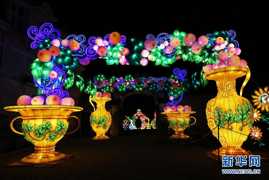 這是12月15日在法國(guó)謝爾河畔塞勒市的塞納古堡拍攝的中國(guó)彩燈。  新華社記者 高靜 攝